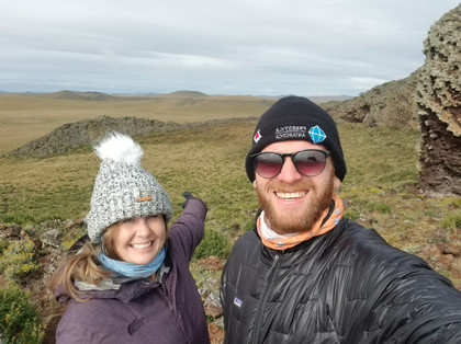 After exploring the park we hit the road for El Calafate in Argentina. Today was going to be a long day in the van which also included a boarding crossing, which we were nervous about because we heard they take all of the fresh produce, meats, eggs, etc off of you. We stopped for lunch and cooked and ate as much as we could! Of course, after gorging ourselves they didn't even check what we had in the van! During lunch Tiffany managed to make a few friends!